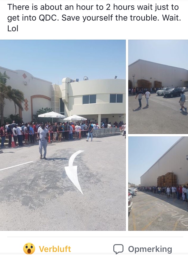 File bij de QDC! Bijna twee uur lang in de rij voor je drankjes. De winkel was net een maand gesloten geweest vanwege de heilige maand. Logisch natuurlijk. Er was dus al drukte begin mei, maar nu de heilige maand voorbij was, was het helemaal gekkenhuis!! En dan krijg ik soms het verwijt een drankorgel te zijn.. volgens mij val ik nog best mee.