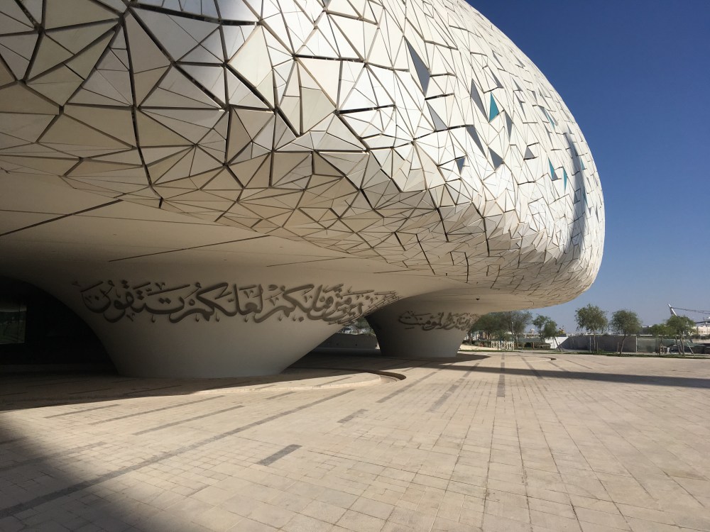 Uiteindelijk stonden we op de juiste plek hierboven. En ja, dat is echt een moskee. Niet het bouwwerk wat je in gedachten had he? Een half jaar geleden liep ik hier rond met mijn zus, afvragend wat dit precies voor gebouw zou zijn. Tot er een enorm geluid uit de luidsprekers daarboven kwam. Dat bleek later de oproep voor het gebed te zijn. Kortom, de moskee in Education City, tenminste als je weet dat het een moskee is, is niet te missen.