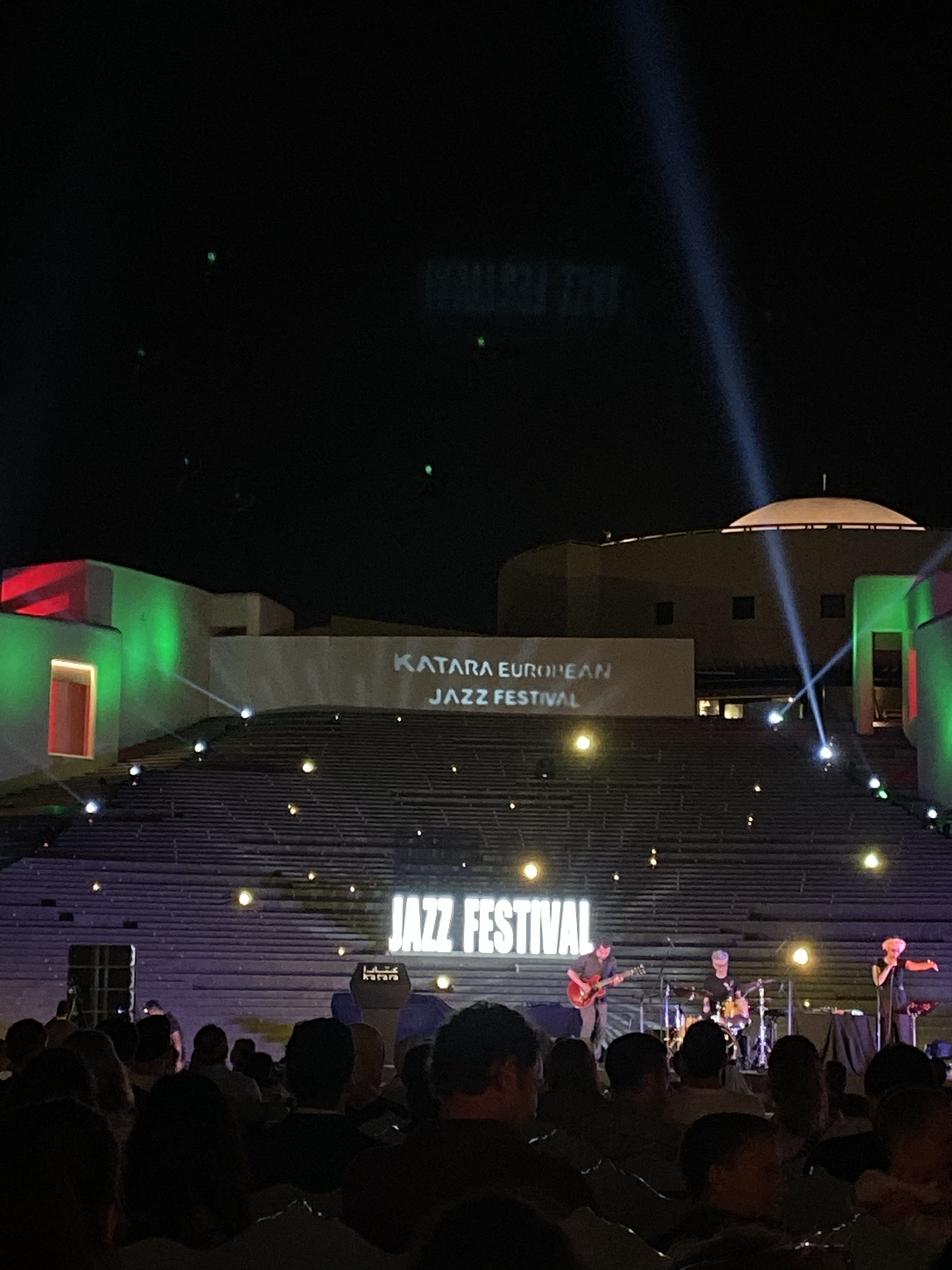 Geen Nederlandse artiesten dit jaar op het programma, maar in multi culti Qatar is het altijd leuk om iets anders mee te pakken, en dus lieten we ons bekoren door Portugese muziek. Bijkletsen zat er helaas niet in, want voor ons kregen we een duidelijke sneer van mensen die hier zaten om puur te luisteren. Dat genot viel hen blijkbaar zelf tegen toen ze, ondanks dat we daarna plichtsgetrouw onze monden dicht hielden, na vijf minuten alweer weg waren. Konden wij weer los. De drummer van de jazzband dacht daar hetzelfde over blijkbaar. Hij ging inmiddels helemaal op in zijn psychedelische experimentele jazzmuziek. Wij keken elkaar nog eens aan maar bleven toch nog even zitten. Dat getingeling was het niet voor ons, misschien werd het hierna beter.