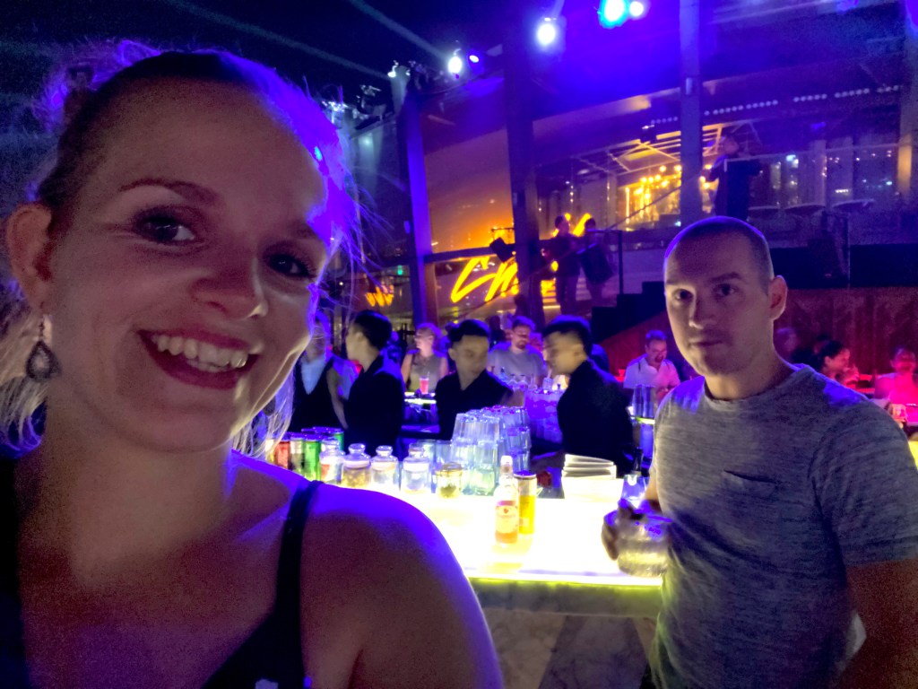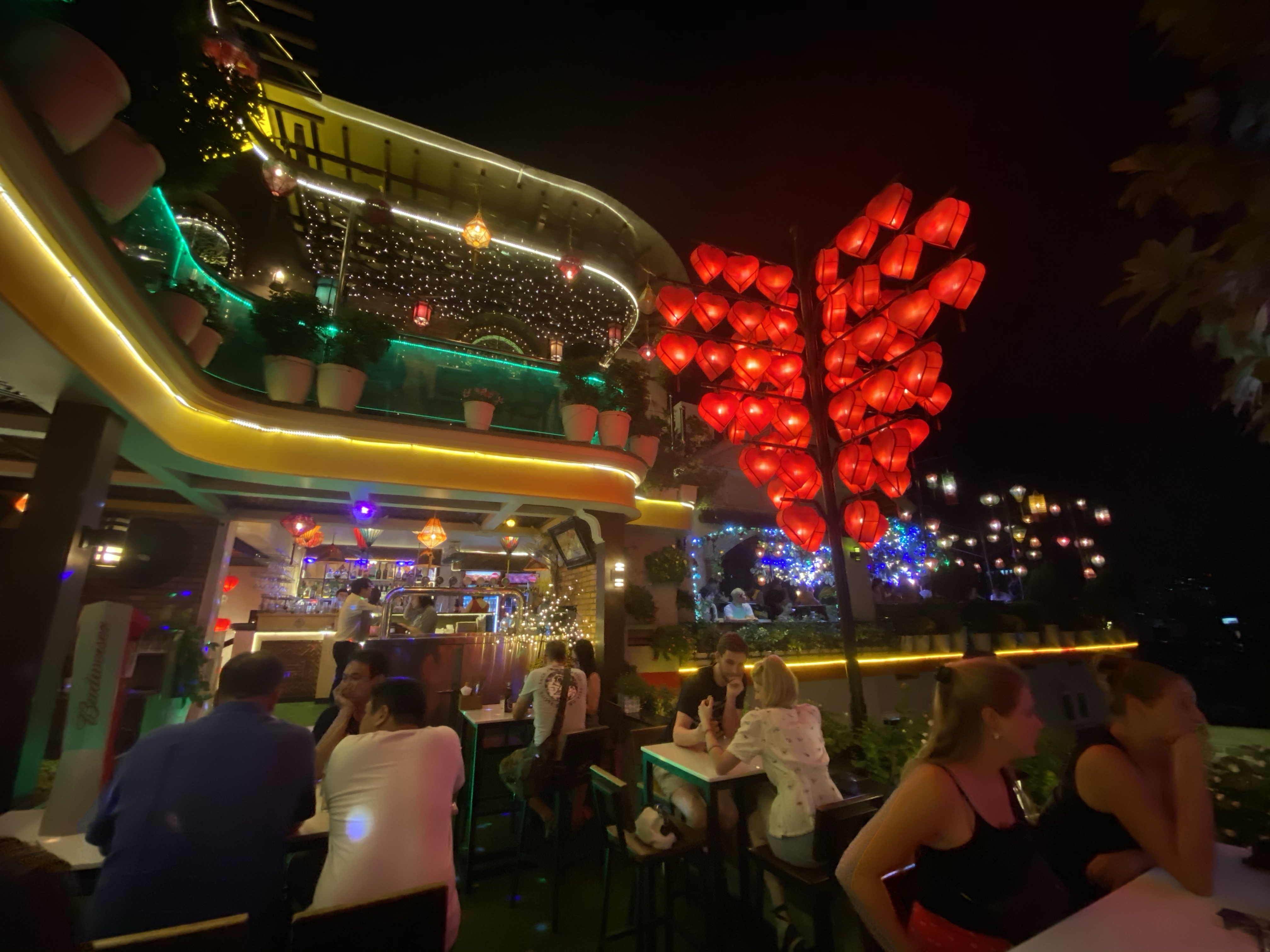 Ook sprak Rik over een leuk straatje met allemaal barretjes en cafés, geen auto’s op de weg maar vooral stoeltjes en terrasjes. Maar waar die te vinden? Lang leve het internet en een zoekmachine, en zo dronken we enkele minuten later een drankje in één van de meest luidruchtige straten waar ik ooit ben geweest (zie video later). Na nog een drankje op een rooftopbar die Rik van de vorige layover nog wel wist te vinden, besloten we de avond af te sluiten op een terrasje. Zo moe als we waren, zo lastig was het toch nog in slaap te komen. Rik waarschuwde me al dat hij waarschijnlijk toch pas laat in slaap zou vallen, en jawel hoor, dat jetlagsysteem werkt bij mij precies zo. Gelukkig konden we uitslapen de volgende ochtend.