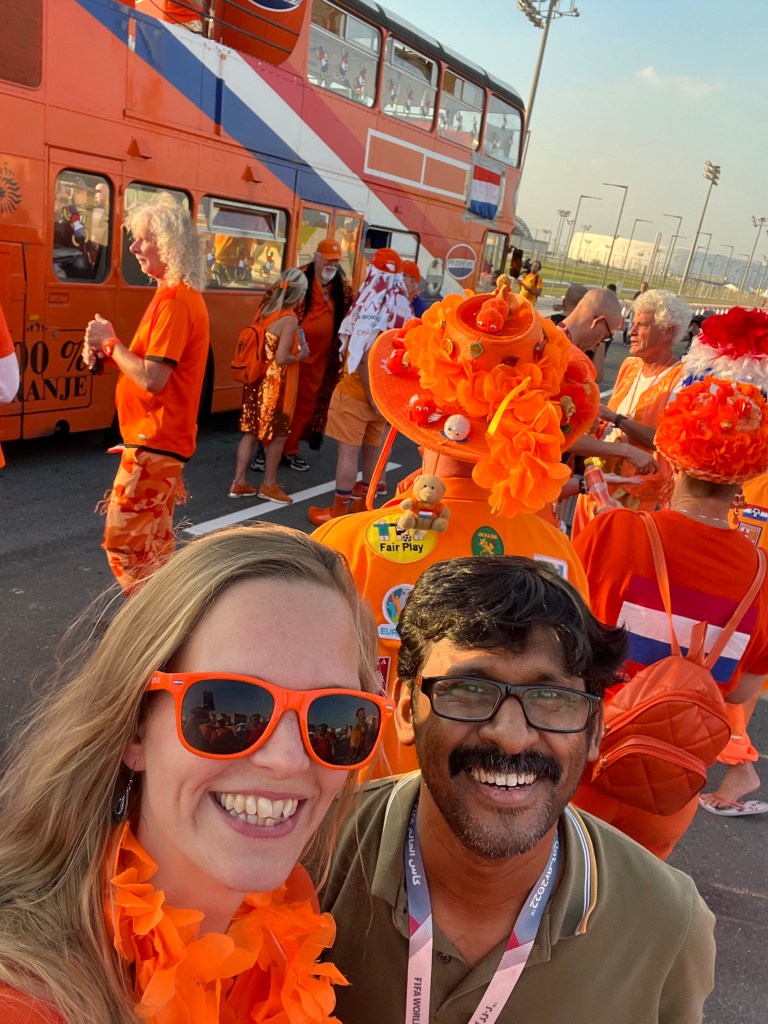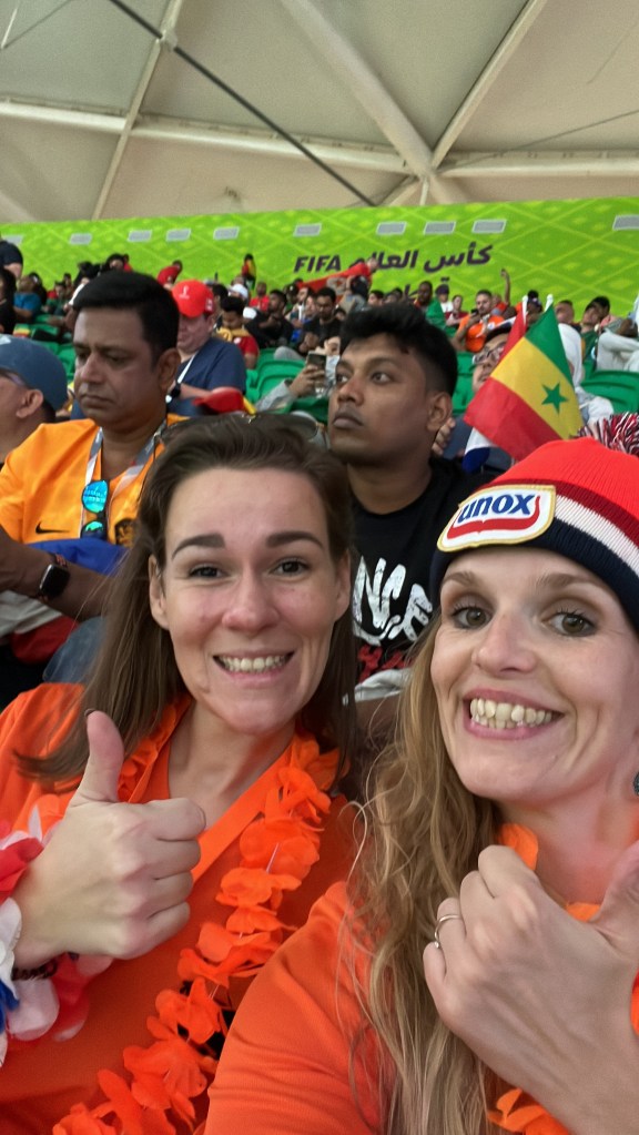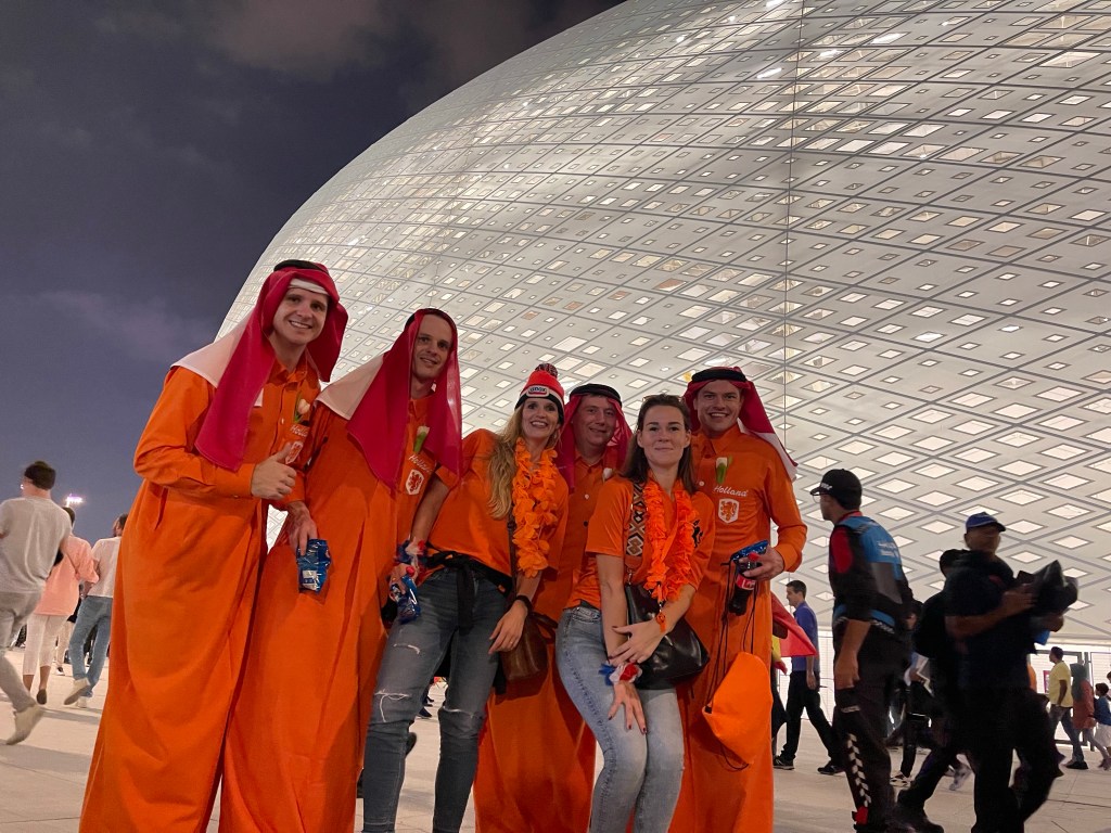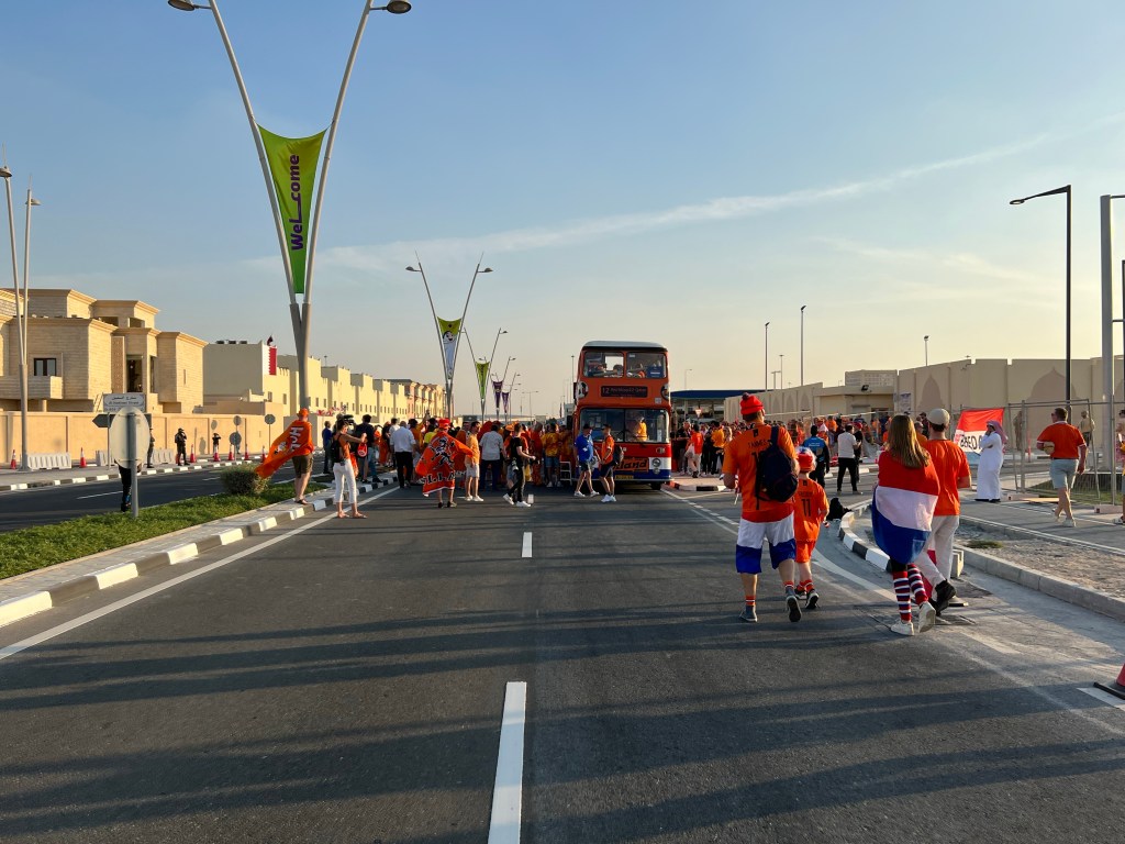 Veel mensen vertrokken al voor het einde van de wedstrijd, maar wij hebben nog even staan juichen voor het Nederlands elftal. Buiten wachtte nog een feeststemming en vele fans feliciteerden ons met de overwinning. Er was een goede sfeer! Na weer heel wat fotosessies en nog wat gezelligheid zijn een groot deel van de Nederlandse fans nog een bar ingegaan om verder te feesten tot in de late uurtjes. Als wij iets langer dan een avondje oppas hebben zit dat er een volgende keer misschien voor ons ook nog in, maar wij hebben het feestje in de auto en thuis voortgezet. En hopelijk kunnen deze feestjes nog tot 18 december worden voortgezet, want ondanks alle controverse en ophef, weten de Nederlanders het hier toch nog gezellig te maken!